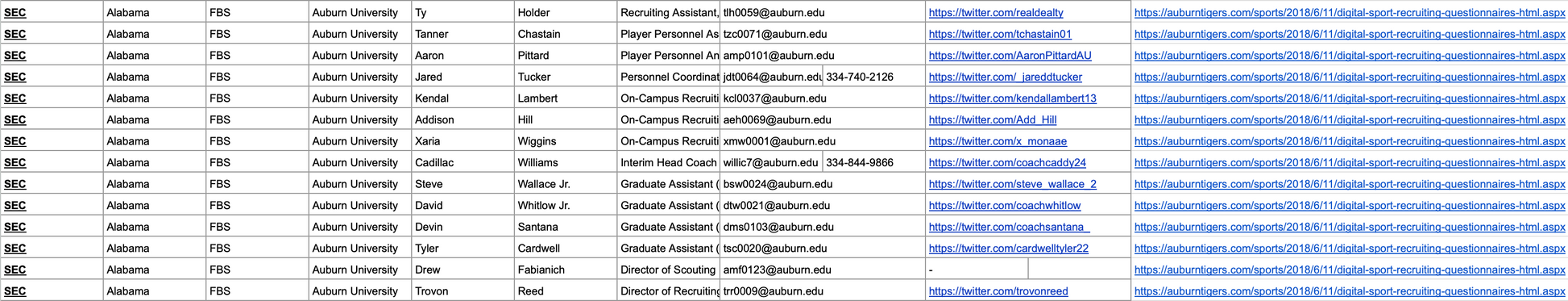 The Next Level Sports Coach Contact Sheet includes over 2,700 FBS coaches, over 1,700 FCS coaches, over 1,600 D2 coaches, over 2,400 D3 Coaches, over 1,000 Juco coaches, and over 900 NAIA coaches. The full spreadsheet includes just over 10,500 college coaches' names, schools, emails, phone numbers, coach Twitter, team's Twitter, and the link to the school's athlete questionnaire. We also show you how to use the Coach Contact Sheet to get in touch with all of these coaches.